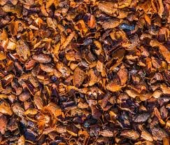 Aspect : fragments fins, secs et légers Couleur : brun clair à brun foncé Odeur : cacao torréfié